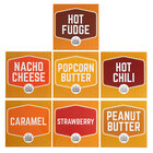 This Carnival King PW35DECAL decal set is a great way to fix a worn or torn decal on your Carnival King HSPW35, RWLL35, and WPLL35 warmers! The decals merchandise your product and help to draw in customers, so be sure to replace them promptly if needed. This set contains hot fudge, nacho cheese, popcorn butter, hot chili, caramel, strawberry, and peanut butter graphics, sized to fit your warmers. The decals slide in and out so that you can easily use your own custom decal or serve different toppings out of the same warmer.