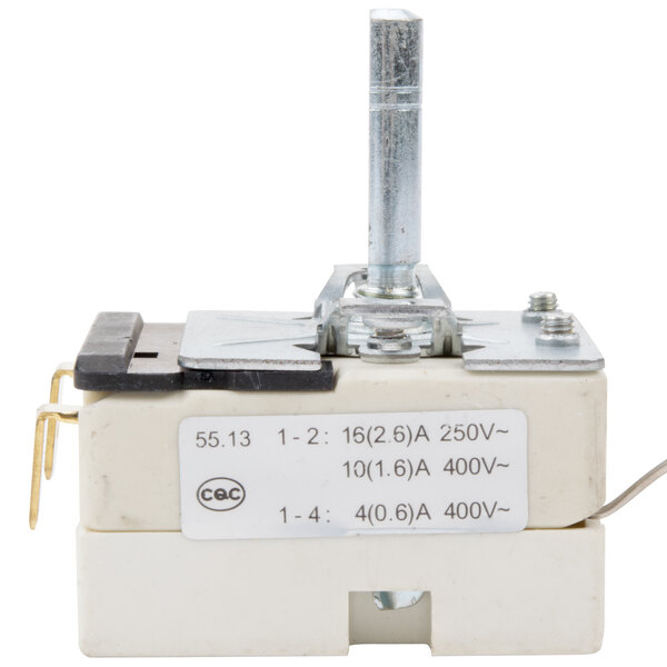 Ensure that your Carnival King waffle maker is properly cooking your waffles by replacing the damaged thermostat with this Carnival King 382WBMTHERM thermostat! This thermostat will accurately control the temperature of your waffle maker so that you'll never have to worry about burned or undercooked products. It fits WSM22, WSM11, WCM1, WBS46, WBM26, WBM13, and WBS180 waffle makers.