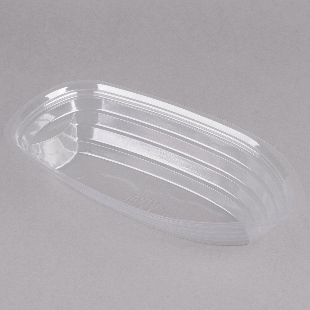 Made from durable PET plastic, this banana split boat will be the ideal serving piece for your establishment. Since it is disposable, it is great for to go orders and makes clean up a breeze! Each boat is capable of holding 12 oz., great for shared desserts.
