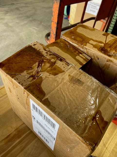 Package was dropped off by Fed-Ex. Syrup all over the place. Syrup on counter where they dropped off the package. Total mess.