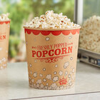 Perfect for movie theaters and snack bars, the cups are stackable for easy and attractive storage, and they boast red and white graphics of delicious popcorn that will entice your customers to stop by for a snack. Their kraft material is easily disposable, so customers can quickly discard them after use without a hassle. These cups are the perfect mix of playful and functional, and they won't break the bank! They are the ideal budget-friendly choice for serving your customers in function and style. Keep your costs low and your customers happy by reaching for these Carnival King kraft popcorn cups!